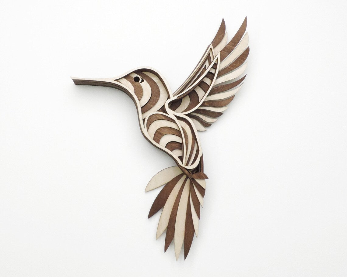 Perfecto para salas, comedores, entradas o cualquier pared que desees transformar, este colibrí ha sido cuidadosamente cortado y ensamblado capa por capa para crear un efecto visual único con volumen y profundidad. Su acabado natural en madera resalta las vetas y aporta armonía a estilos de decoración como el minimalista, rústico, boho o contemporáneo.