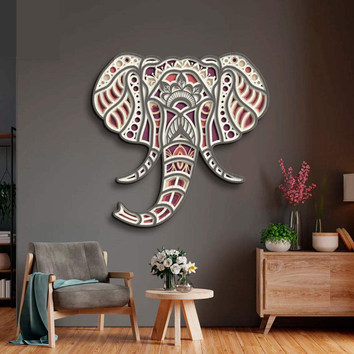 Un diseño majestuoso que refleja fuerza, sabiduría y protección. Este cuadro de elefante está elaborado en varias capas de MDF y trabajado artesanalmente, logrando un efecto tridimensional que resalta cada detalle de su figura. Una pieza decorativa única que aporta carácter y estilo a cualquier espacio.