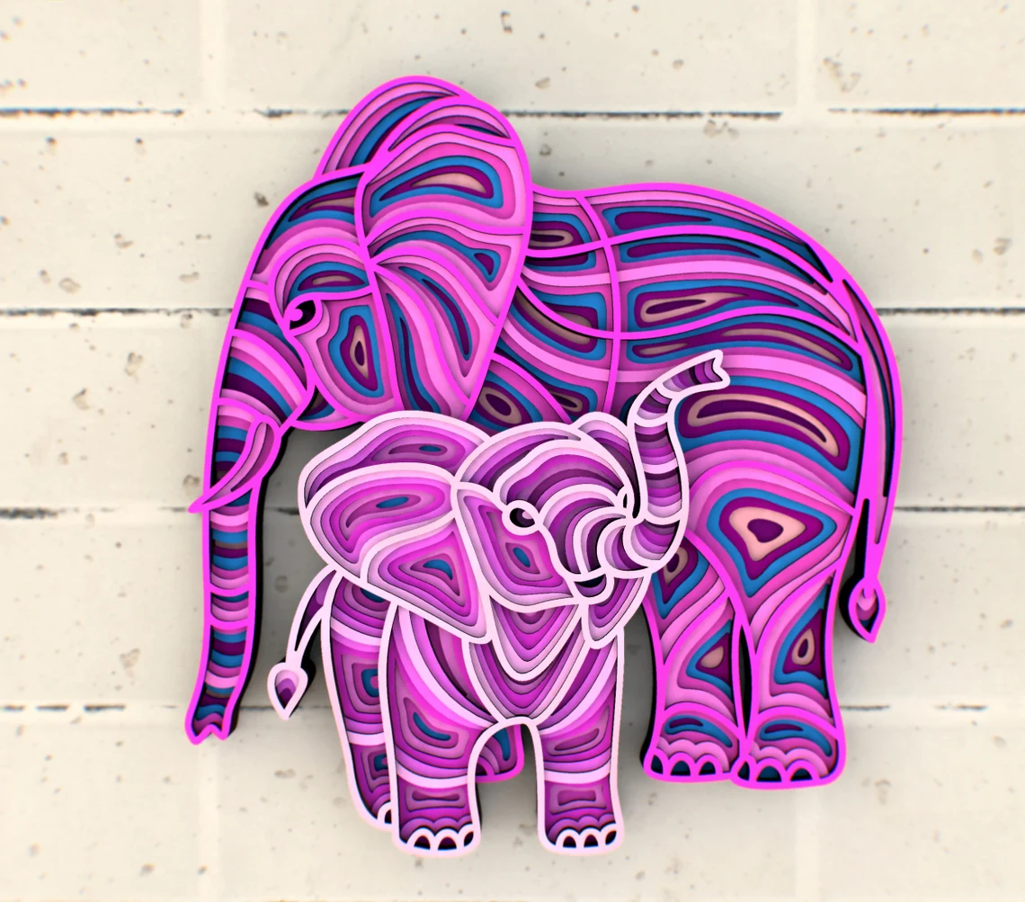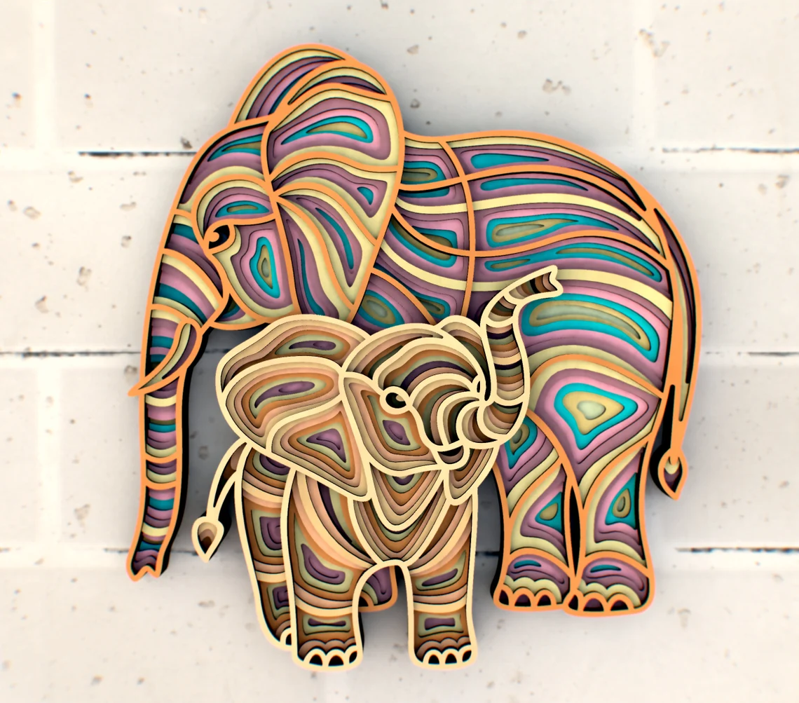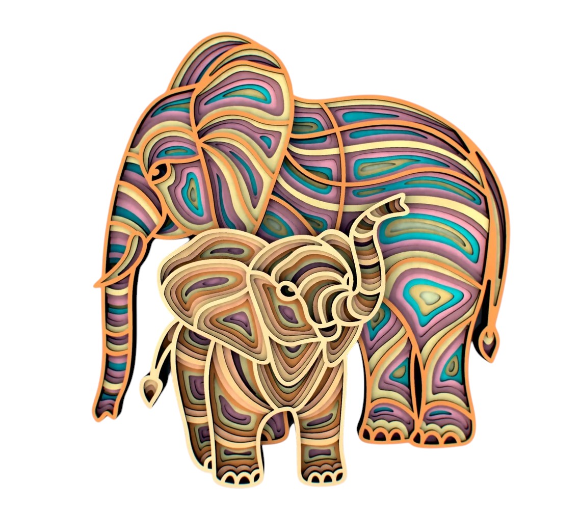 Un diseño tierno y lleno de significado: la fuerza y el amor de una madre representados en un cuadro de elefantes, elaborado en varias capas de MDF y trabajado artesanalmente. Su efecto tridimensional y acabados detallados lo convierten en una pieza decorativa única que transmite unión, protección y cariño.