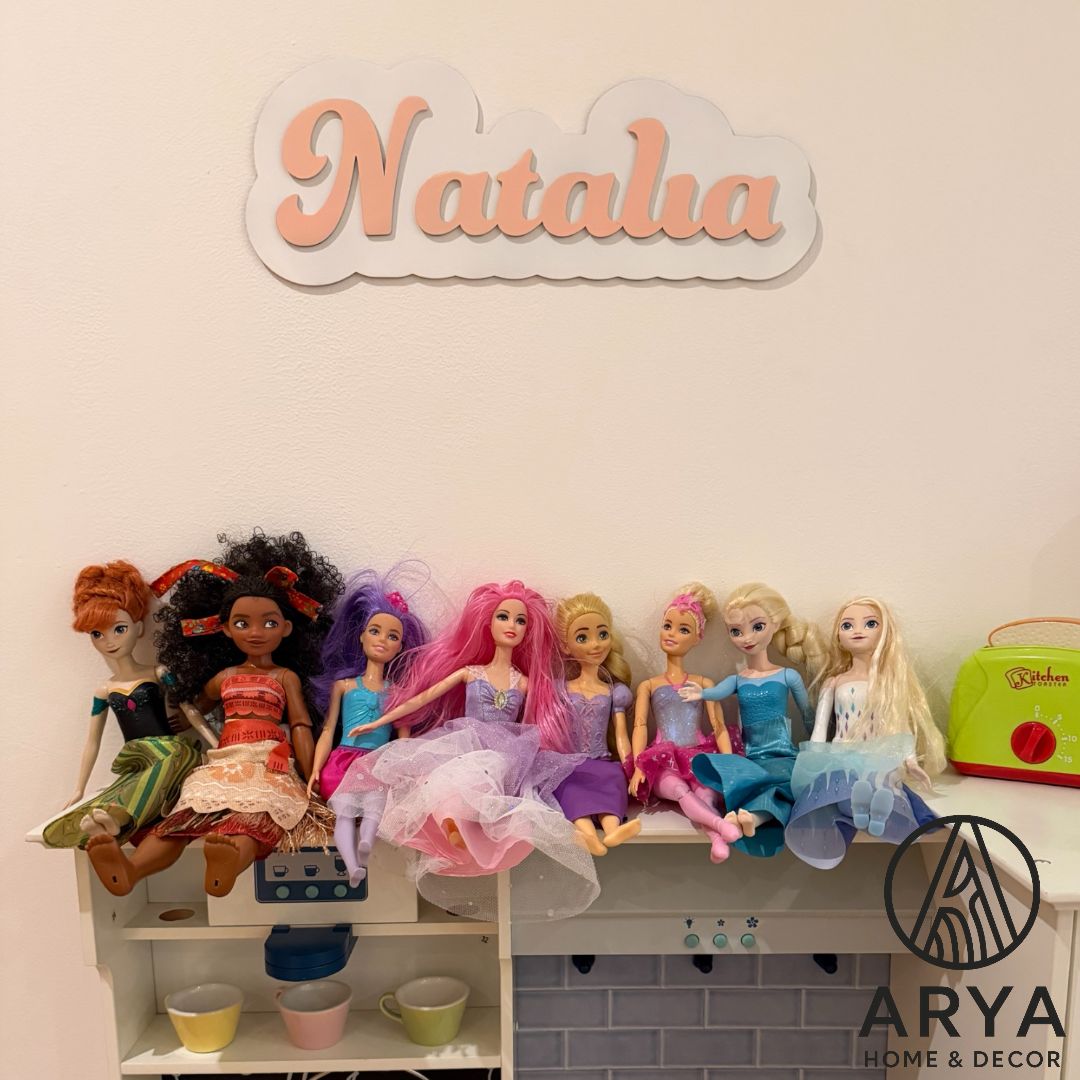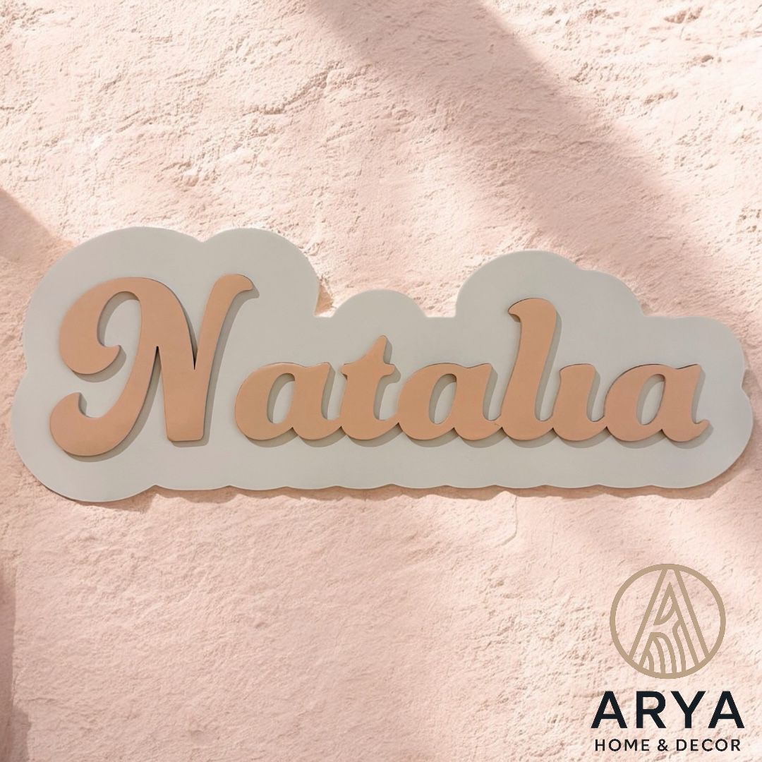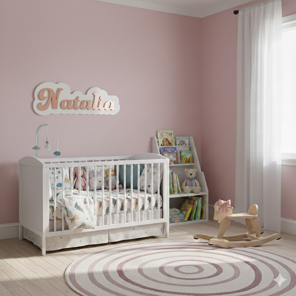 Nombre decorativo en madera, ideal para recámaras infantiles.