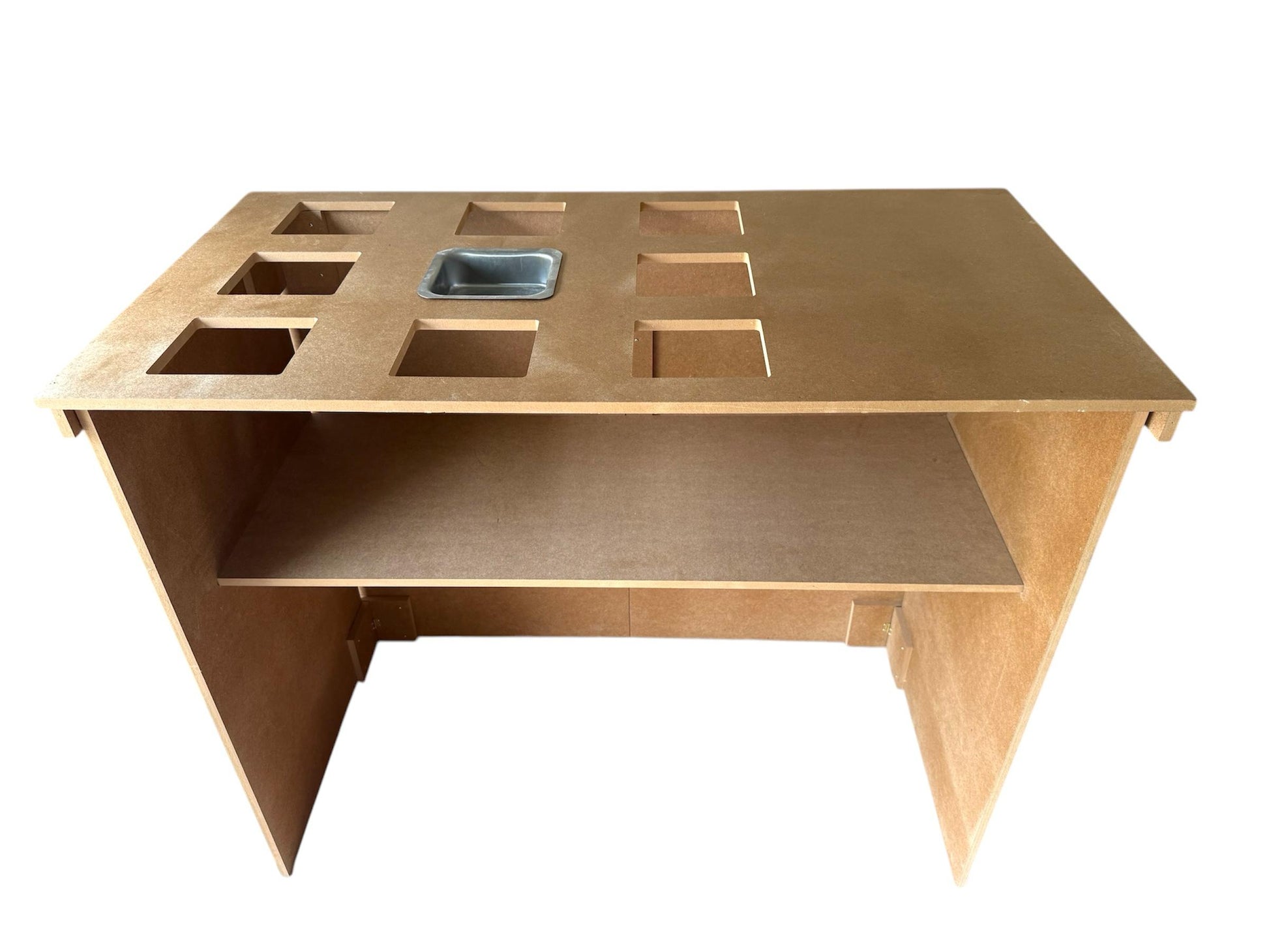Material: MDF grueso y resistente, con acabado al natural. El tono puede variar ligeramente según la madera (oscuro, medio o claro), pero no afecta la calidad ni el resultado final una vez pintado o decorado.